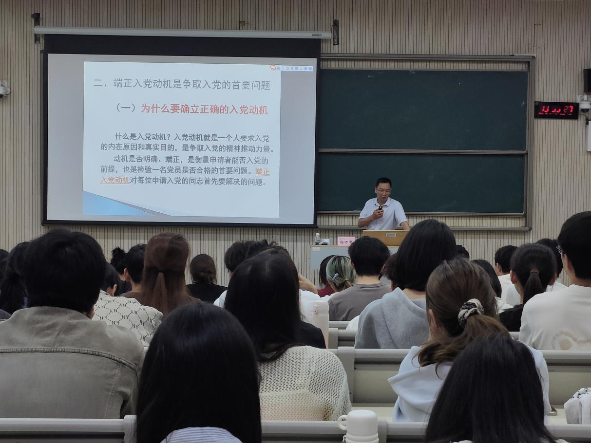 10月18日晚上,入党积极分子培训班第二次课堂教学在一教103开展,由宜宾校区党工委常务副书记陆跃文主讲,带领学员重温党的历史、坚定理想信念,并深入学习领悟党的二十大精神。