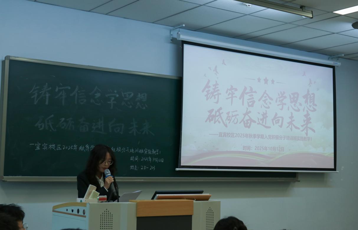 10月17日,宜宾校区学生工作办公室主任杨万能在一教103为入党积极分子开展第一次课堂教学。他以“学习党章、遵守党章、贯穿党章、维护党章”为主线,结合“怎样端正入党动机、早日入党”的核心问题,通过解读党章条文、分享党员先进案例,引导学员悟初心、明行动方向。