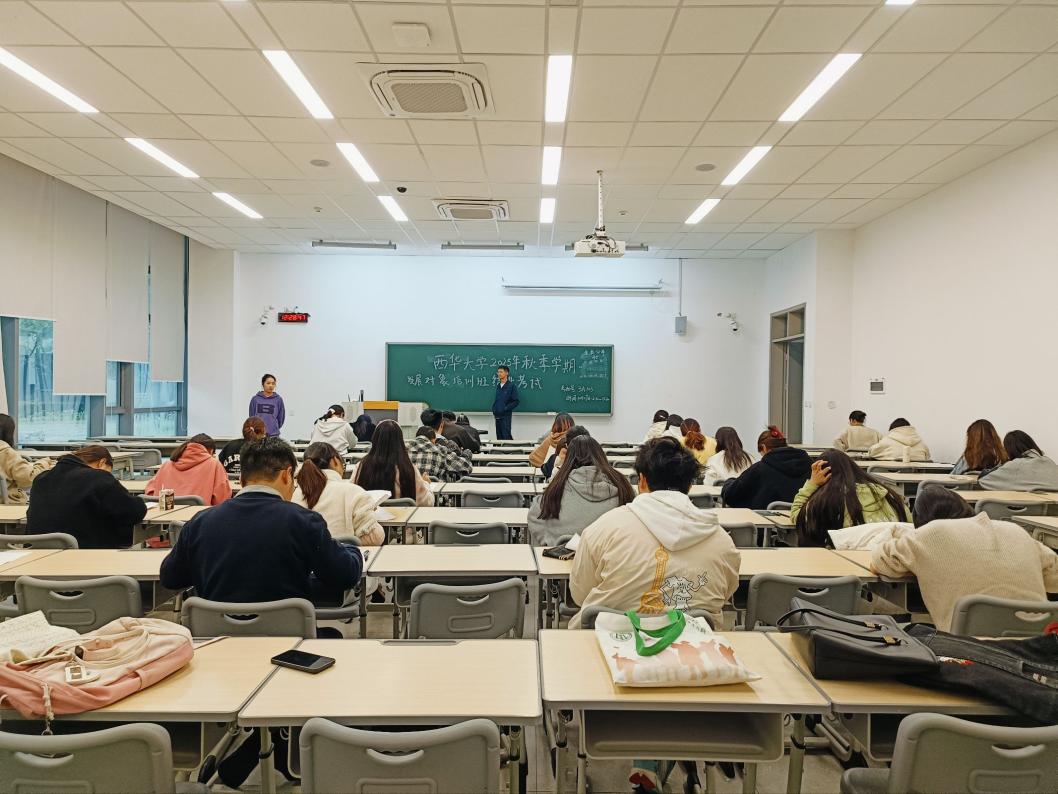 10月18日,西华大学纪委办公室案管信访科科长夏文菊及马克思主义学院严欢、范霞两位老师以不同的主题在2D107教室对发展对象培训班学员进行课堂教学。