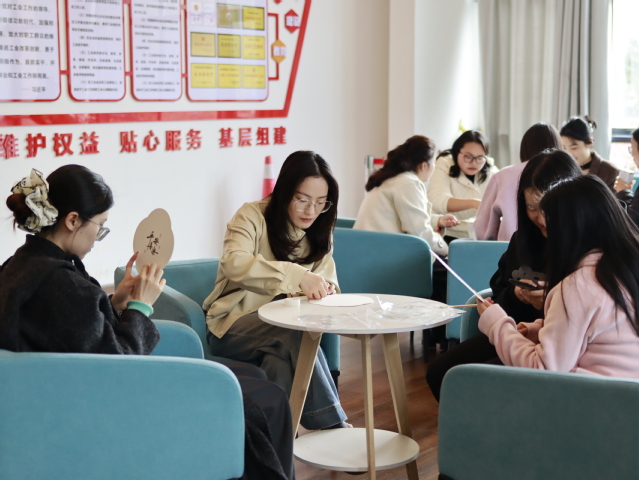 为庆祝第116个“三八”国际妇女节,3月5日下午,宜宾校区管委会在职工之家组织开展漆扇制作活动,定点宜宾校区的女教职工参加。