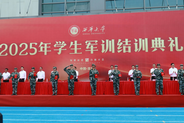9月30日上午,宜宾校区2025级学生军训结训典礼在科教中心运动场成功举行。承训部队武警宜宾支队副政委王利强中校,宜宾校区党工委常务副书记陆跃文、军训工作领导小组成员单位以及校区党工委相关部门负责人出席典礼。宜宾校区党工委副书记、纪工委书记毕达平主持典礼。