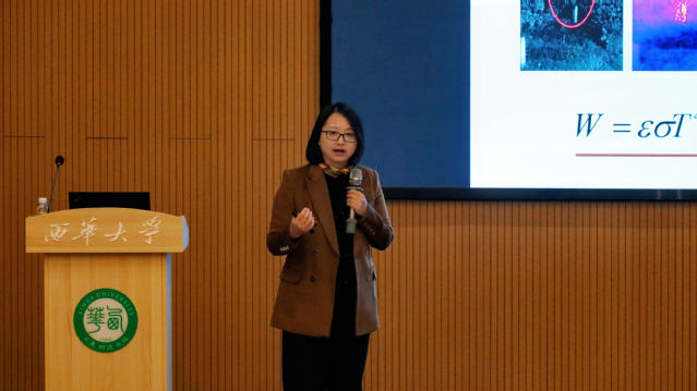 报告会上,张丽以生动的案例和丰富的知识,深入浅出地阐释了电磁辐射控制技术的基本原理,并分享了团队在电磁辐射控制材料技术方面的研究进展,以及该项技术在电子行业、房屋建筑、绿色生态以及运动健康等众多领域的应用前景。随后,她还介绍了电子科技大学的基本情况,分享了团队在人才培养、学科竞赛、科研项目等方面取得的成绩,并鼓励同学们将来到电子科技大学深造。她还结合身边优秀学子奋斗成才的故事,循循善诱地激励引导现场同学珍惜大学生活,及早树立目标,规划成长路径,鼓励同学们志存高远,勿忘初心,做到会学、会思、会讲、会写、会做,努力实现个人目标和理想,成为对国家、对社会有用的人。